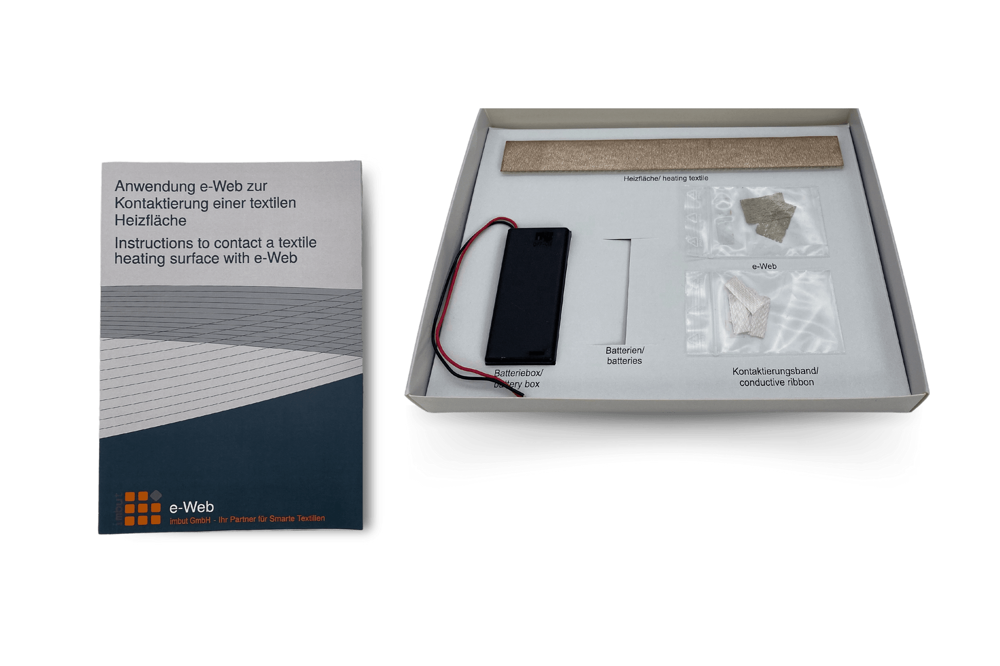 The Textile Heating Experiment Kit is a great way to get familiar with the electrical connection of Smart Textiles using e-Web. It contains all the materials needed to build an electrical connection, making it ideal for research and development departments in the Smart Textiles industry or hobbyists with an interest in Smart Textiles.